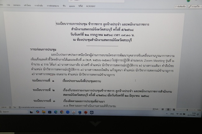 วันที่ 21 กรกฎาคม 2568 เวลา 09.30 น. นายสหนณ ชัยจรินันท์ สหกรณ์จังหวัดสระบุรี เป็นประธานการประชุมข้าราชการ ลูกจ้างประจำ และพนักงานราชการ สำนักงานสหกรณ์จังหวัดสระบุรี ประจำเดือนมิถุนายน ครั้งที่ 5 /2568 เพื่อวางแผนและติดตามผลการปฏิบัติงานในปีงบประมาณ พ.ศ.2568 ให้สอดคล้องกับนโยบายของกรมส่งเสริมสหกรณ์ สามารถปฏิบัติงานร่วมกันภายในหน่วยงานอย่างมีประสิทธิภาพและเป็นไปในแนวทางเดียวกัน พร้อมทั้งรับทราบปัญหา/อุปสรรคในการปฏิบัติงานของกลุ่มส่งเสริมสหกรณ์ในพื้นที่ และให้คำแนะนำเพื่อเป็นแนวทางในการปฏิบัติงานต่อไป พร้อมให้เกียรติมอบใบประกาศนียบัตรผู้ผ่านการอบรมโครงการพัฒนาบุคลากรขับเคลื่อนงานบรูณาการความเข้มแข็งและตัวชี้วัดหลักภายใต้แผนระดับที่ 3 (พ.ศ.2566-2570) ไปสู่การปฏิบัติ ผ่านระบบ Zoom Meeting รุ่นที่ 2 จัดอบรมระหว่างวันที่ 16-18 มิถุนายน 2568 จำนวน 4 ราย คือ นางสาวนภาลัย ม่วงศรี นักวิชาการสหกรณ์ปฏิบัติการ นางสาวเนติมา คำลือไชย นักวิชาการสหกรณ์ปฏิบัติการ นางสาวพลอยไพลิน แก้วมูลนา นักวิชาการสหกรณ์ชำนาญการ และนางสาววรพรรณ อนะมาน นักวิชาการสหกรณ์ชำนาญการ ณ ห้องประชุมสำนักงานสหกรณ์จังหวัดสระบุรี ตำบลปากเพรียว อำเภอเมือง จังหวัดสระบุรี