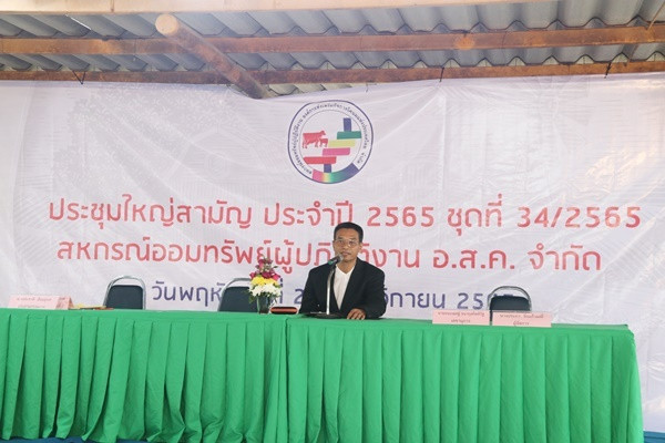 วันที่ 24 พฤศจิกายน 2565 เวลา 09.30 น. นายสหนณ ชัยจรินันท์ สหกรณ์จังหวัดสระบุรี ให้เกียรติเข้าร่วมประชุมใหญ่สามัญประจำปี 2565 ของสหกรณ์ออมทรัพย์ผู้ปฏิบัติงานองค์การส่งเสริมกิจการโคนมแห่งประเทศไทย จำกัด สำหรับปีบัญชีสิ้นสุด 30 กันยายน 2565 ณ บริเวณด้านข้างที่ทำการสหกรณ์ออมทรัพย์ปฏิบัติงานองค์การส่งเสริมกิจการโคนมแห่งประเทศไทย จำกัด อำเภอมวกเหล็ก จังหวัดสระบุรี