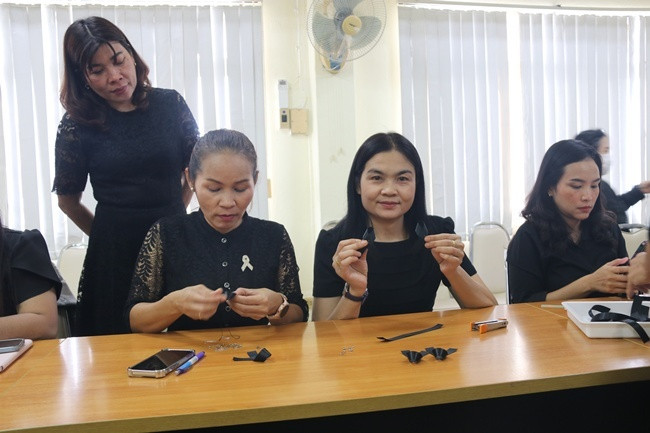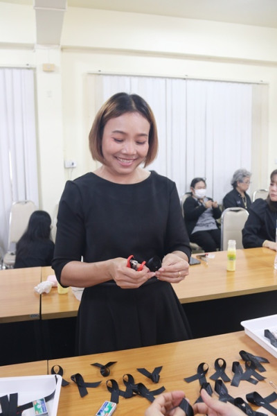 วันที่ 5 พฤศจิกายน 2568 เวลา 13.30 น.นางสาวนิชาภา เนื้อเย็น นักวิชาการสหกรณ์ชำนาญการพิเศษ รักษาราชการแทนสหกรณ์จังหวัดสระบุรี พร้อมด้วยข้าราชการ ลูกจ้างประจำ และพนักงานราชการ สำนักงานสหกรณ์จังหวัดสระบุรี ร่วมประดิษฐ์โบว์ริบบิ้นสีดำ ณ สำนักงานสหกรณ์จังหวัดสระบุรี ตำบลปากเพรียว อำเภอเมือง จังหวัดสระบุรี เพื่อแจกจ่ายให้ประชาชนไว้เป็นสัญลักษณ์แห่งการไว้อาลัยและน้อมรำลึกในพระมหากรุณาธิคุณของสมเด็จพระนางเจ้าสิริกิติ์ พระบรมราชินีนาถ พระบรมราชชนนีพันปีหลวง