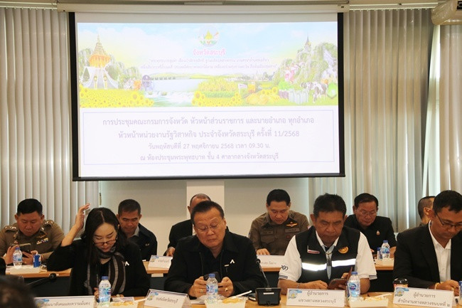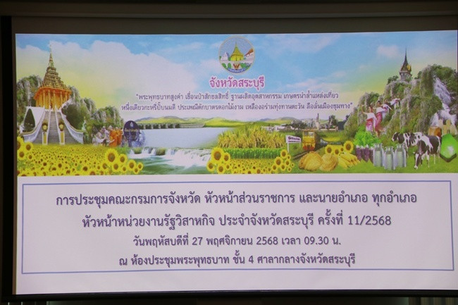 วันที่ 27 พฤศจิกายน 2568 เวลา 09.30 น. นางสาวนิชาภา เนื้อเย็น นักวิชาการสหกรณ์ชำนาญการพิเศษ รักษาราชการแทนสหกรณ์จังหวัดสระบุรี ร่วมประชุมคณะกรมการจังหวัด หัวหน้าส่วนราชการ และหัวหน้าหน่วยงานรัฐวิสาหกิจ ประจำจังหวัดสระบุรี ครั้งที่ 11/2568 เพื่อรับทราบข่าวเด่นของจังหวัดสระบุรี ผลการดำเนินงานของส่วนราชการในจังหวัดสระบุรีในรอบเดือนที่ผ่านมา รวมทั้งพิจารณาข้อสั่งการของผู้บริหารจังหวัดสระบุรี โดยมี นายบัญชา เชาวรินทร์ ผู้ว่าราชการจังหวัดสระบุรี เป็นประธานการประชุม ณ ห้องประชุมพระพุทธบาท ชั้น 4 ศาลากลางจังหวัดสระบุรี ตำบลตะกุด อำเภอเมือง จังหวัดสระบุรี