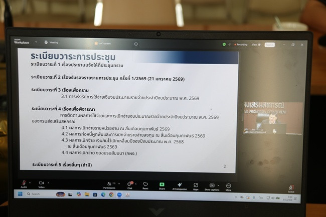 วันที่ 5 มีนาคม 2569 เวลา 09.00 น. นางปฐมพร สุทธนากร สหกรณ์จังหวัดสระบุรี พร้อมด้วยข้าราชการและพนักงานราชการ สังกัดฝ่ายบริหารทั่วไป เข้าร่วมประชุมคณะกรรมการติดตามเร่งรัดการใช้จ่ายเงินงบประมาณของกรมส่งเสริมสหกรณ์ ครั้งที่ 2/2569 ผ่านระบบ Zoom Meeting ซึ่งถ่ายทอดสัญญาณจากห้องประชุมกรมส่งเสริมสหกรณ์ กรุงเทพฯ มายังจุดรับสัญญาณ ณ ห้องประชุมสำนักงานสหกรณ์จังหวัดสระบุรี โดยมี นายณฤทธิ์ บุญชัย รองอธิบดีกรมส่งเสริมสหกรณ์ เป็นประธานในการประชุม เพื่อรับทราบการเร่งรัดการใช้จ่ายเงินงบประมาณรายจ่ายประจำปีงบประมาณ พ.ศ.2569 พร้อมทั้งการติดตามผลการใช้จ่ายและการเบิกจ่ายงบประมาณรายจ่ายประจำปีงบประมาณ พ.ศ.2569 ของกรมส่งเสริมสหกรณ์ และเรื่องอื่นๆ