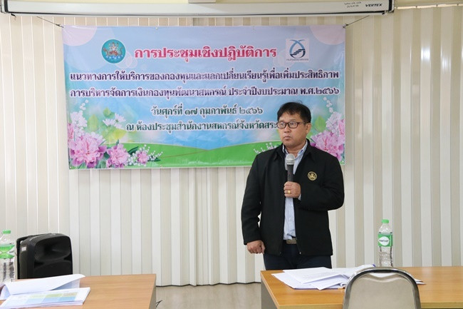 วันที่ 17 กุมภาพันธ์ 2566 เวลา 09.30 น. นายสหนณ ชัยจรินันท์ สหกรณ์จังหวัดสระบุรี เป็นประธานเปิดโครงการประชุมเชิงปฏิบัติการ "แนวทางการให้บริการของกองทุนและแลกเปลี่ยนเรียนรู้เพื่อเพิ่มประสิทธิภาพการบริหารจัดการเงินกองทุนพัฒนาสหกรณ์ ประจำปีงบประมาณ พ.ศ. 2566” ณ ห้องประชุมสำนักงานสหกรณ์จังหวัดสระบุรี ตำบลปากเพรียว อำเภอเมือง จังหวัดสระบุรี