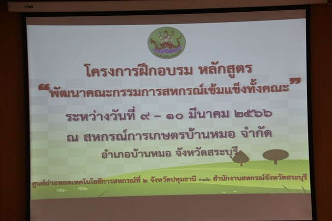 วันที่ 9 มีนาคม 2566 เวลา 08.45 น. นายสหนณ ชัยจรินันท์ สหกรณ์จังหวัดสระบุรี ให้เกียรติเป็นประธานในพิธีเปิดโครงการฝึกอบรม หลักสูตร “พัฒนากรรมการสหกรณ์เข้มแข็งทั้งคณะ” รุ่นที่ 1 ณ สหกรณ์การเกษตรบ้านหมอ จำกัด อ.บ้านหมอ จ.สระบุรี จัดอบรม จำนวน 2 วัน ระหว่างวันที่ 9-10 มีนาคม 2566 โดยมีศูนย์ถ่ายทอดเทคโนโลยีการสหกรณ์ที่ 2 จังหวัดปทุมธานี เป็นหน่วยงานรับผิดชอบการจัดโครงการ มีวัตถุประสงค์เพื่อให้คณะกรรมการสหกรณ์ได้รู้และเข้าใจเรื่องที่เกี่ยวข้องกับการบริหารงานสหกรณ์ กำหนดทิศทางการพัฒนาแก้ไขปัญหาและวางแผนการพัฒนาสหกรณ์ไปสู่ความเข้มแข็ง กลุ่มเป้าหมายเข้าร่วมอบรม จำนวน 20 คน ประกอบด้วย คณะกรรมการสหกรณ์ทั้งคณะ ผู้ตรวจสอบกิจการ ฝ่ายจัดการ