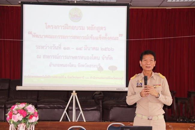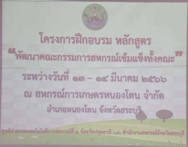 วันที่ 13 มีนาคม 2566 เวลา 08.45 น. นายสหนณ ชัยจรินันท์ สหกรณ์จังหวัดสระบุรี ให้เกียรติเป็นประธานในพิธีเปิดโครงการฝึกอบรม หลักสูตร “พัฒนากรรมการสหกรณ์เข้มแข็งทั้งคณะ” รุ่นที่ 2 ณ สหกรณ์การเกษตรหนองโดน จำกัด อ.หนองโดน จ.สระบุรี จัดอบรม จำนวน 2 วัน ระหว่างวันที่ 13-14 มีนาคม 2566 โดยมีศูนย์ถ่ายทอดเทคโนโลยีการสหกรณ์ที่ 2 จังหวัดปทุมธานี เป็นหน่วยงานรับผิดชอบการจัดโครงการ มีวัตถุประสงค์เพื่อให้คณะกรรมการสหกรณ์ได้รู้และเข้าใจเรื่องที่เกี่ยวข้องกับการบริหารงานสหกรณ์ กำหนดทิศทางการพัฒนาแก้ไขปัญหาและวางแผนการพัฒนาสหกรณ์ไปสู่ความเข้มแข็ง กลุ่มเป้าหมายเข้าร่วมอบรม จำนวน 20 คน ประกอบด้วย คณะกรรมการสหกรณ์ทั้งคณะ ผู้ตรวจสอบกิจการ ฝ่ายจัดการ