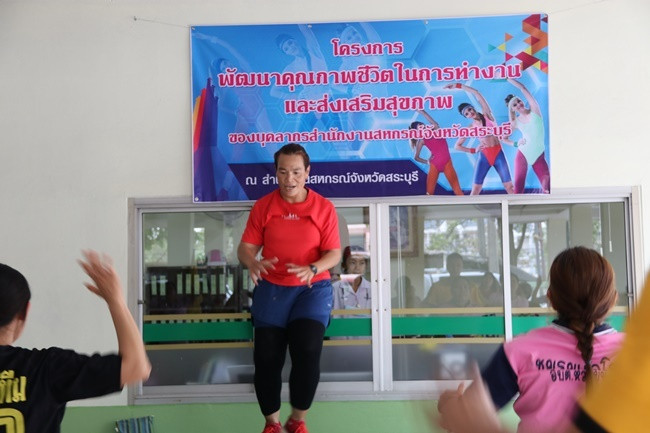 วันที่ 16 มีนาคม 2566 บุคลากรสำนักงานสหกรณ์จังหวัดสระบุรี ร่วมกันออกกำลังกายเต้นแอโรบิคทุกวันพฤหัสบดี เวลา 15.30 - 16.30 น. ของทุกสัปดาห์ เพื่อให้บุคลากรของหน่วยงานมีสุขภาพร่างกายที่แข็งแรง และส่งเสริมความสามัคคีภายในหน่วยงาน ตามโครงการพัฒนาคุณภาพชีวิตในการทำงานและส่งเสริมสุขภาพของบุคลากรสำนักงานสหกรณ์จังหวัดสระบุรี ประจำปี 2566 ณ บริเวณใต้ถุนอาคารสำนักงานสหกรณ์จังหวัดสระบุรี ชั้น 1 ตำบลปากเพรียว อำเภอเมือง จังหวัดสระบุรี