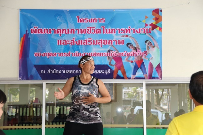 วันที่ 23 มีนาคม 2566 สำนักงานสหกรณ์จังหวัดสระบุรี จัดกิจกรรมออกกำลังกายเต้นแอโรบิคทุกวันพฤหัสบดี ระหว่างเวลา 15.30 - 16.30 น. ของทุกสัปดาห์ เพื่อให้บุคลากรของหน่วยงานมีสุขภาพร่างกายที่แข็งแรง และส่งเสริมความสามัคคีภายในหน่วยงาน ตามโครงการพัฒนาคุณภาพชีวิตในการทำงานและส่งเสริมสุขภาพของบุคลากรสำนักงานสหกรณ์จังหวัดสระบุรี ประจำปีงบประมาณ พ.ศ. 2566 ณ บริเวณใต้ถุนอาคารสำนักงานสหกรณ์จังหวัดสระบุรี ชั้น 1 ตำบลปากเพรียว อำเภอเมือง จังหวัดสระบุรี