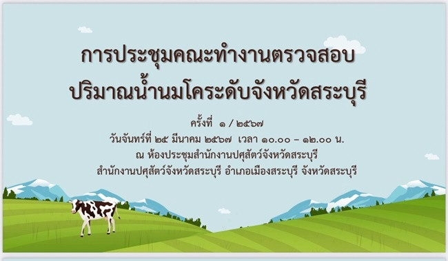 วันที่ 25 มีนาคม 2567 เวลา 10.00 น. นายสหนณ ชัยจรินันท์ สหกรณ์จังหวัดสระบุรี พร้อมด้วย นางสาวนิชาภา เนื้อเย็น ผู้อำนวยการกลุ่มส่งเสริมและพัฒนาธุรกิจสหกรณ์ เข้าร่วมประชุมหารือการตรวจสอบปริมาณน้ำนมโคระดับจังหวัด ณ ห้องประชุมสำนักงานปศุสัตว์จังหวัดสระบุรี ต.ปากเพรียว อ.เมือง จ.สระบุรี โดยมี นายวุฒิพงศ์ เนียมหอม ผู้ตรวจราชการกระทรวงเกษตรและสหกรณ์ เขต 1 เป็นประธานในที่ประชุม โดยนายสุขุมวิท สุขพันธุ์ถาวร เกษตรและสหกรณ์ในจังหวัดสระบุรี พร้อมด้วยหัวหน้าส่วนราชการสังกัดกระทรวงเกษตรและสหกรณ์ ผู้แทนหน่วยงาน และเจ้าหน้าที่ที่เกี่ยวข้องเข้าร่วมประชุม เพื่อพิจารณาแนวทางการดำเนินงาน ในการลงพื้นที่เก็บข้อมูลฟาร์มโคนมในจังหวัดสระบุรี พร้อมปริมาณน้ำนมดิบ เพื่อตรวจสอบยืนยันข้อมูลปริมาณน้ำนมโคที่แท้จริง เพื่อนำมาใช้เป็นข้อมูลในการบริหารจัดการนมทั้งระบบให้มีความถูกต้องตรงตามปริมาณน้ำนมโคที่มีอยู่จริงและเป็นที่ยอมรับของผู้ที่เกี่ยวข้องทุกภาคส่วนต่อไป
