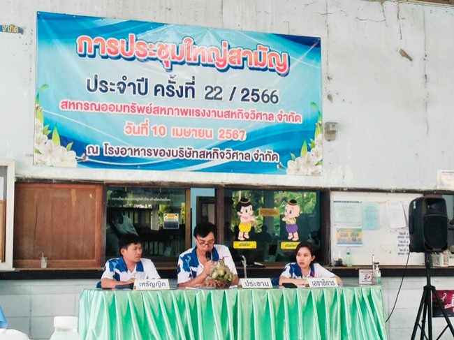 วันที่ 10 เมษายน 2567 เวลา 17.30 น. นายสหนณ ชัยจรินันท์ สหกรณ์จังหวัดสระบุรี มอบหมายให้นางสาวเนติมา คำลือไชย นักวิชาการสหกรณ์ปฏิบัติการ และนางสาวจีรนันท์ ฉ่ำมาก นักวิชาการสหกรณ์ปฏิบัติการ กลุ่มส่งเสริมสหกรณ์ 2 เข้าร่วมประชุมใหญ่สามัญประจำปี 2566 สหกรณ์ออมทรัพย์สหภาพแรงงานสหกิจวิศาล จำกัด ปีบัญชีสิ้นสุด 31 มกราคม 2567 ณ โรงอาหารของบริษัทสหกิจวิศาล จำกัด ต.ตาลเดี่ยว อ.แก่งคอย จ.สระบุรี สหกรณ์มีสมาชิก ณ วันสิ้นปีบัญชี ทั้งหมด 121 คน สหกรณ์ มีทุนดำเนินงานรวมทั้งสิ้น 33,248,196.46 บาท ผลกำไรสุทธิประจำปี 1,191,791.80 บาท