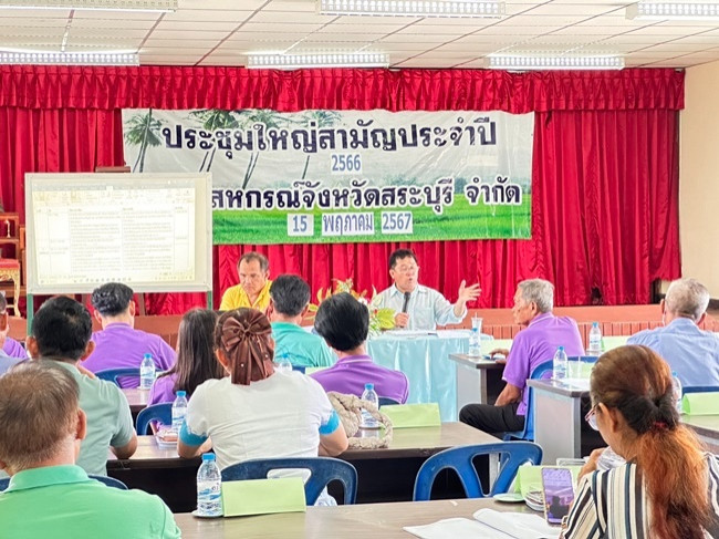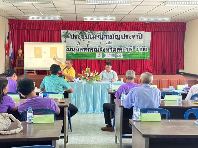 วันที่ 15 พฤษภาคม 2567 เวลา 10.00 น. นายสหนณ ชัยจรินันท์ สหกรณ์จังหวัดสระบุรี ให้เกียรติเป็นประธานในพิธีเปิดการประชุมใหญ่สามัญประจำปี 2566 ชุมนุมสหกรณ์จังหวัดสระบุรี จำกัด ปีบัญชีสิ้นสุด 31 ธันวาคม 2566 ณ สำนักงานชุมนุมสหกรณ์จังหวัดสระบุรี จำกัด ตำบลบ้านยาง อำเภอเสาไห้ จังหวัดสระบุรี พร้อมนี้มี นายเปาณรงค์ บัวไชโย ผู้อำนวยการกลุ่มส่งเสริมสหกรณ์ 3 นายปิยวิชญ์ แสงวิจิตร เจ้าพนักงานส่งเสริมสหกรณ์อาวุโส และนายศุภเนตร ร่วมกระโทก นักวิชาการสหกรณ์ปฏิบัติการ สังกัดกลุ่มส่งเสริมสหกรณ์ 3 เข้าร่วมประชุมด้วย ในโอกาสนี้สหกรณ์จังหวัดสระบุรี ได้ให้เกียรติมอบนโยบายและคำแนะนำให้สหกรณ์ดำเนินงานภายใต้ระเบียบข้อบังคับและกฎหมาย พร้อมขออวยพรให้สหกรณ์มีความมั่งคั่ง มั่นคง เป็นที่พึ่งของสมาชิก และขอให้การประชุมครั้งนี้ดำเนินไปด้วยความเรียบร้อย อนึ่ง ณ วันสิ้นปีสหกรณ์มีสมาชิกทั้งสิ้น 24 สหกรณ์ มีทุนดำเนินงานรวมทั้งสิ้น 11,820,671.26 บาท ผลการดำเนินงานประจำปี 2566 มีกำไรสุทธิ จำนวน 304,314.98 บาท ดำเนินธุรกิจ 2 ประเภท คือ จัดหาสินค้ามาจำหน่าย ได้แก่ ขายเมล็ดพันธุ์ ขายข้าวสาร ข้าวสารหอมมะลิ ข้าวเหนียว ข้าวไรซ์เบอรี่ ขายเครื่องเขียนแบบพิมพ์ ขายสินค้าอุปโภคบริโภค และธุรกิจรวบรวมผลิตผล โดยระหว่างปีสหกรณ์ไม่มีการรวบรวมข้าวเปลือก มีเพียงรายได้บริการตลาดกลาง และรายได้ตลาดกลาง