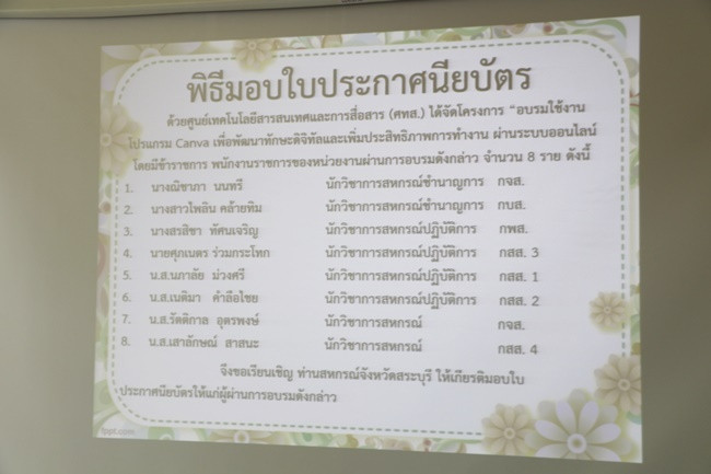 วันที่ 19 สิงหาคม 2567 เวลา 09.30 น. นายสหนณ ชัยจรินันท์ สหกรณ์จังหวัดสระบุรี เป็นประธานการประชุมข้าราชการ ลูกจ้างประจำ และพนักงานราชการ สำนักงานสหกรณ์จังหวัดสระบุรี ครั้งที่ 8/2567 ณ ห้องประชุมสำนักงานสหกรณ์จังหวัดสระบุรี ตำบลปากเพรียว อำเภอเมือง จังหวัดสระบุรี เพื่อวางแผนและติดตามผลการปฏิบัติงานในปีงบประมาณ พ.ศ.2567 ให้สอดคล้องกับนโยบายของกรมส่งเสริมสหกรณ์ สามารถปฏิบัติงานร่วมกันภายในหน่วยงานอย่างมีประสิทธิภาพและเป็นไปในแนวทางเดียวกัน พร้อมทั้งรับทราบปัญหา/อุปสรรคในการปฏิบัติงานของกลุ่มส่งเสริมสหกรณ์ในพื้นที่ และให้คำแนะนำเพื่อเป็นแนวทางในการปฏิบัติงานต่อไป และในโอกาสนี้ได้มอบประกาศนียบัตรแก่ข้าราชการและพนักงานราชการในสังกัด จำนวน 9 ราย ได้แก่ ผู้ผ่านการอบรม “การใช้งานโปรแกรม Canva เพื่อพัฒนาทักษะดิจิทัลและเพิ่มประสิทธิภาพการทำงาน ผ่านระบบออนไลน์” ผ่านระบบ Zoom Meeting เมื่อวันที่ 27 มิถุนายน 2567 จำนวน 8 ราย และผู้ผ่านการอบรมโครงการโรงเรียนผู้ตรวจการสหกรณ์ หลักสูตร “ผู้ตรวจการสหกรณ์ระดับพื้นฐาน” ระว่างวันที่ 27-31 พฤษภาคม 2567 จำนวน 1 ราย เพื่อเป็นเกียรติแก่ผู้ผ่านอบรมในครั้งนี้ด้วย
