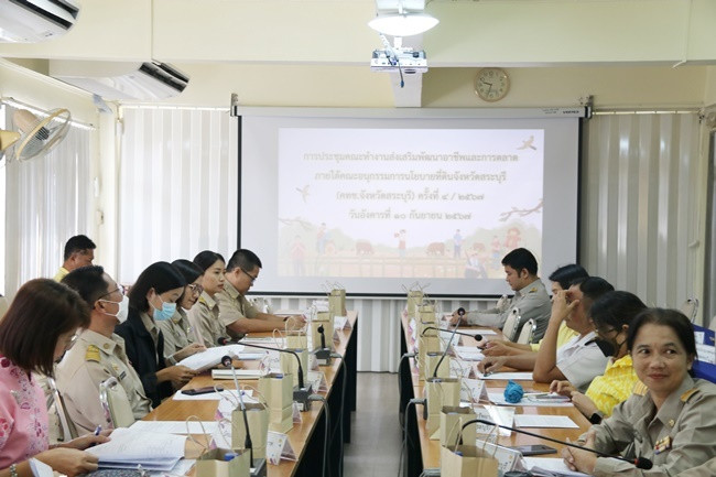 วันที่ 10 กันยายน 2567 เวลา 09.30 น. นายสหนณ ชัยจรินันท์ สหกรณ์จังหวัดสระบุรี พร้อมด้วย นางณิชาภา นนทรี ผู้อำนวยการกลุ่มจัดตั้งและส่งเสริมสหกรณ์ และเจ้าหน้าที่กลุ่มจัดตั้งและส่งเสริมสหกรณ์ ได้จัดประชุมคณะทำงานส่งเสริมพัฒนาอาชีพและการตลาด ภายใต้คณะอนุกรรมการนโยบายที่ดินจังหวัดสระบุรี (คทช.จังหวัดสระบุรี) ครั้งที่ 4/2567 ณ ห้องประชุมสำนักงานสหกรณ์จังหวัดสระบุรี ตำบลปากเพรียว อำเภอเมือง จังหวัดสระบุรี โดยมีนายพลวรรธน์ เทียนชัยมงคล รองผู้ว่าราชการจังหวัดสระบุรี เป็นประธานในการประชุมครั้งนี้ เพื่อบูรณาการร่วมกับคณะทำงานส่งเสริมพัฒนาอาชีพและการตลาดในการดำเนินงานตามกรอบภารกิจ 6 ด้าน รวมถึงแนะนำ ส่งเสริม และพัฒนาอาชีพให้ตรงกับความต้องการของราษฎรที่ได้รับการจัดสรรที่ดินทำกินตามนโยบายรัฐบาล โดยในปีงบประมาณ พ.ศ.2567 ผลการดำเนินงานเป็นไปตามแผนงานที่กำหนดไว้