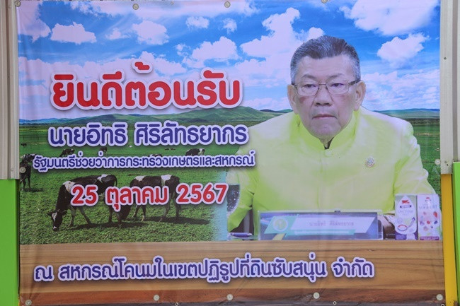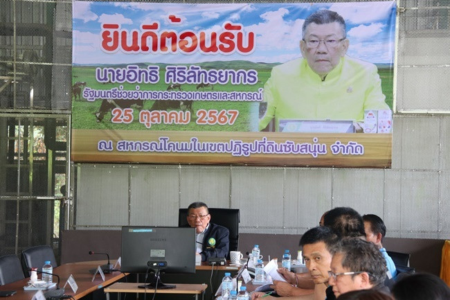วันที่ 25 ตุลาคม 2567 เวลา 13.40 น. นายอิทธิ ศิริลัทธยากร รัฐมนตรีช่วยว่าการกระทรวงเกษตรและสหกรณ์ พร้อมคณะ ลงพื้นที่พบปะเกษตรสมาชิกสหกรณ์โคนมในเขตปฏิรูปที่ดินซับสนุ่น จำกัด และรับฟังผลสรุปการดำเนินงานของสหกรณ์โคนมในเขตปฏิรูปที่ดินซับสนุ่น จำกัด พร้อมมอบนโยบายและแนวทางการขับเคลื่อนด้านอุตสาหกรรมนม โดยมี วิรุฬห์ สิทธิวงศ์ รองผู้ว่าราชการจังหวัดสระบุรี นายสมพงษ์ ภูพานเพชร ประธานกรรมการสหกรณ์ฯ พร้อมคณะผู้บริหารสหกรณ์ นายสหนณ ชัยจรินันท์ สหกรณ์จังหวัดสระบุรี คณะผู้บริหารหน่วยงานสังกัดกระทรวงเกษตรและสหกรณ์ คณะผู้บริหาร อ.ส.ค. ข้าราชการ และเจ้าหน้าที่สหกรณ์ ร่วมให้การต้อนรับ ณ ที่ตั้งสหกรณ์ฯ ตำบลซับสนุ่น อำเภอมวกเหล็ก จังหวัดสระบุรี