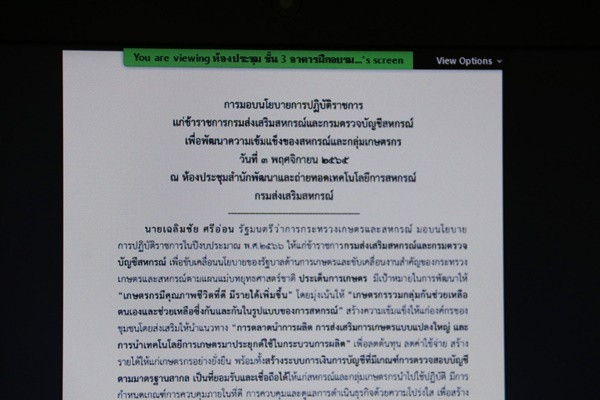 โดยมี นายอลงกรณ์ พลบุตร ที่ปรึกษารัฐมนตรีว่าการกระทรวงเกษตรและสหกรณ์ เป็นประธานเปิดโครงการประชุมฯ มี นายวิศิษฐ์ ศรีสุวรรณ์ อธิบดีกรมส่งเสริมสหกรณ์ คณะผู้บริหารกรมส่งเสริมสหกรณ์ คณะผู้บริหารกรมตรวจบัญชีสหกรณ์ และข้าราชการ ร่วมให้การต้อนรับ โดยถ่ายทอดสัญญาณผ่านระบบ ZOOM Meeting จากห้องประชุม ชั้น 3 อาคารฝึกอบรมส่วนกลาง ชั้น 3 สำนักพัฒนาและถ่ายทอดเทคโนโลยีการสหกรณ์ ถนนพิชัย เขตดุสิต กรุงเทพมหานคร มายังสำนักงานสหกรณ์จังหวัด และหน่วยงานในสังกัดกรมส่งเสริมสหกรณ์ทั่วประเทศ และได้ร่วมกันหารือกำหนดแนวทางการขับเคลื่อนนโยบายกระทรวงเกษตรและสหกรณ์สู่การปฏิบัติระหว่างกรมส่งเสริมสหกรณ์และกรมตรวจบัญชีสหกรณ์ ในการส่งเสริมพัฒนา และแก้ปัญหาของสหกรณ์และกลุ่มเกษตรกรให้สอดคล้องกับนโยบายกระทรวงเกษตรฯ อย่างมีประสิทธิภาพต่อไป